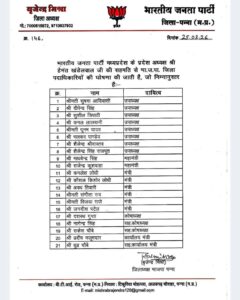 भाजपा जिला पन्ना की घोषित नई कार्यकारिणी में कई सक्रिय युवा चेहरों को स्थान मिला।