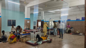 वार्ड फुल होने से फर्श पर लेटकर इलाज कराने को मजबूर हुए लोग