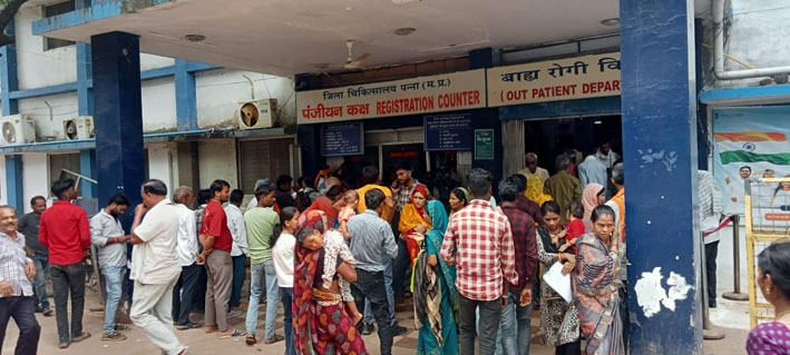 मध्य प्रदेश के अत्यंत ही पिछड़े एवं गरीब जिलों में शामिल पन्ना की बहुसंख्यक आबादी इलाज एवं स्वास्थ्य सेवाओं के लिए सरकारी स्वास्थ्य केंद्रों पर निर्भर है। विडंबना यह है कि जिला अस्पताल में डॉक्टरों के अधिकांश पद रिक्त होने के साथ आंचलिक अस्पतालों सामुदायिक स्वास्थ्य केंद्रों एवं प्राथमिक स्वास्थ्य केंद्रों में भी डॉक्टरों के लगभग 80 से 90 फीसदी पद वर्षों से खाली पड़े हैं। जिससे आंचलिक क्षेत्र के सामान्य मरीज और आंचलिक स्वास्थ्य संस्थाओं के रेफरल मरीज बेहतर इलाज की उम्मीद में प्रतिदिन बड़ी संख्या में जिला अस्पताल पहुंचते हैं। वर्तमान में वायरल फीवर के जबरदस्त प्रकोप की वजह से जिला अस्पताल में आने वाले मरीजों की संख्या में तीन गुना तक बढ़ गई। मरीजों की संख्या के बढ़ते दवाब के कारण जिला अस्पताल की उपचार एवं स्वास्थ्य सेवाएं बुरी तरह चरमरा गईं है। स्थिति यह है कि सुबह 9 बजे से लेकर दोपहर 2 बजे तक अस्पताल में मरीजों का मेला सा लगता है। इस दौरान ओपीडी पर्ची बनवाने से लेकर डॉक्टर से चिकित्सीय परीक्षण कराने, पैथोलॉजी टेस्ट का सैम्पल देने और फिर निःशुल्क सरकारी दवाएं प्राप्त करने तक हर जगह मरीजों को मुसीबत की लंबी कतार में लगना पड़ रहा है। जिला अस्पताल के एक डॉक्टर ने नाम प्रकाशित न करने की शर्त पर बताया कि, तेज धूप और उमस के कारण वायरल फीवर के मामलों में अप्रत्याशित वृद्धि हुई है। अधिकांश मरीज बुखार, सर्दी-खांसी, सिरदर्द, बदन दर्द और जुकाम की शिकायत लेकर आ रहे हैं। कुछ मरीज पेट संबंधी समस्याओं एवं मच्छर जनित बीमारियों से भी पीड़ित रहते हैं।